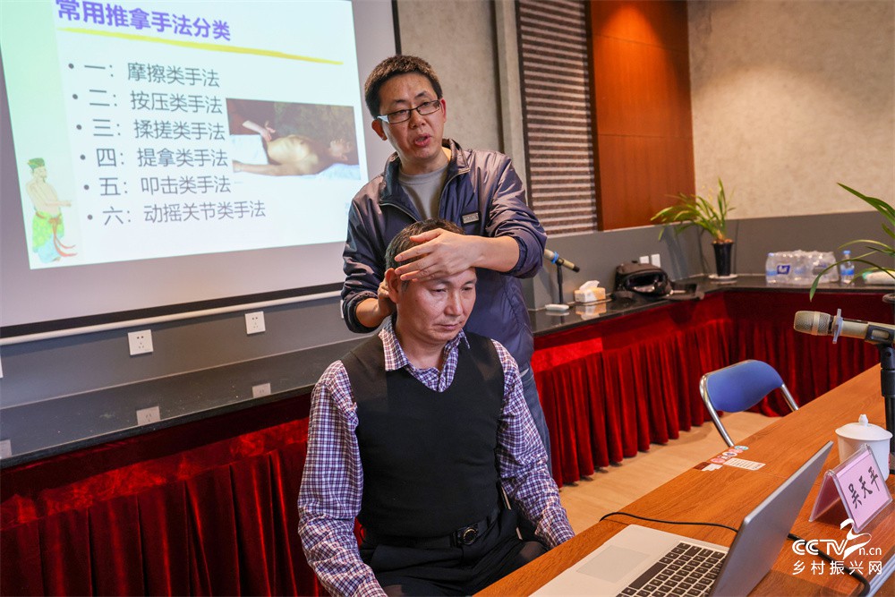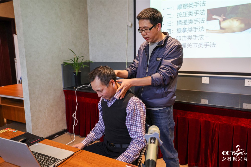 乡村振兴网福建讯(邱汝泉 摄影报道)10月30日,老师在给残疾人上“理疗按摩推拿基础手法”实操课。
