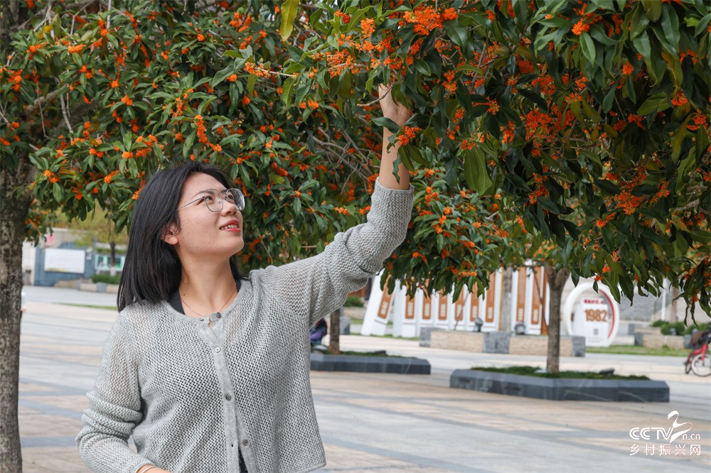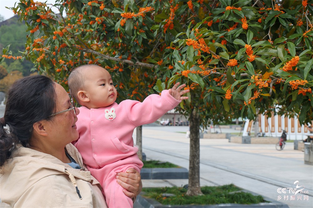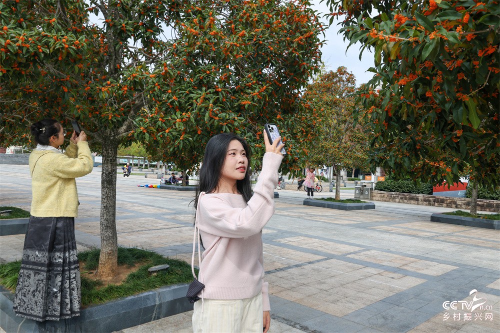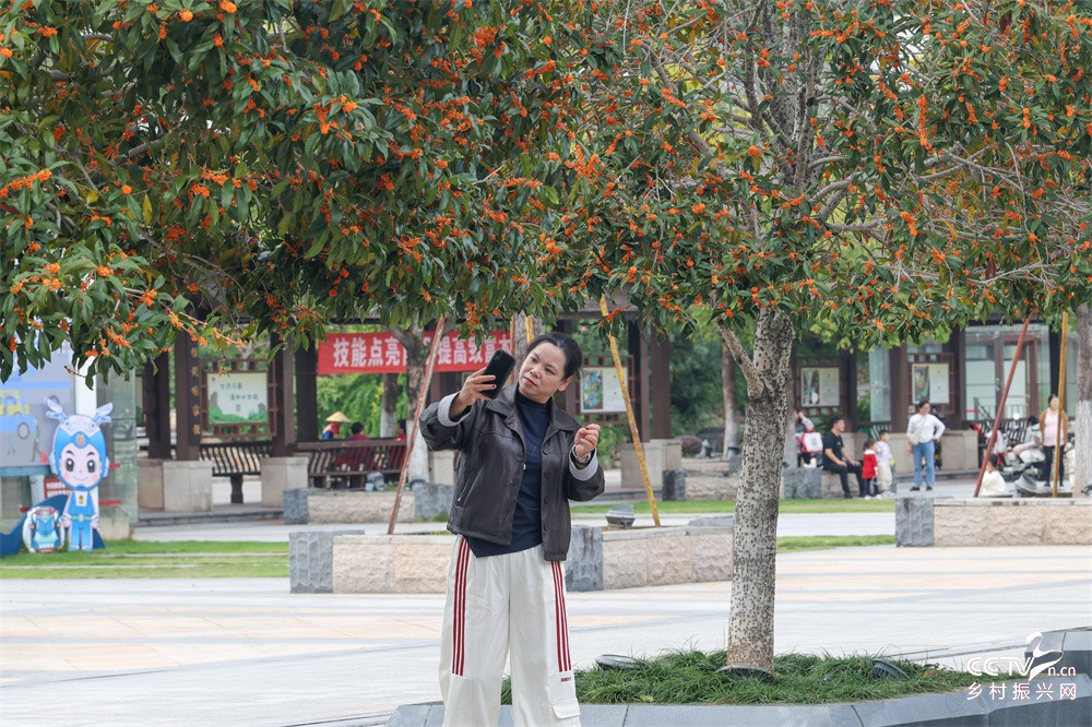 乡村振兴网福建讯(邱汝泉 摄影报道)11月2日,武夷山市民在市民广场观赏盛开的桂花拍照。