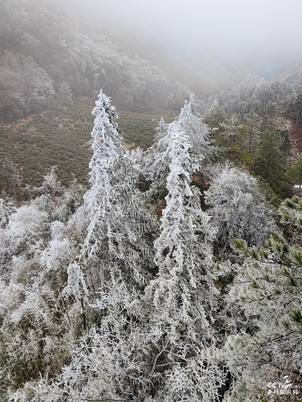 图二至图五、1月22日,拍摄的武夷山国家公园腹地桐木村雾凇景观。