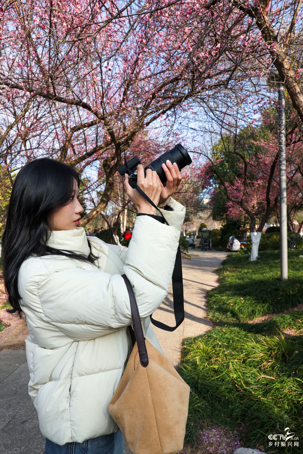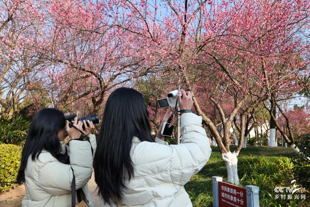 园内,游人纷纷拿出手机或相机,定格这美好的瞬间。他们或站在梅树下,与红梅来一张亲密合影,或选取不同的角度,拍摄花朵的特写,脸上洋溢着兴奋与喜悦。市民们则悠闲地漫步在梅林间,有的驻足细细观赏花朵的美丽,有的则坐在长椅上,享受着暖阳的轻抚,感受着这份宁静与美好。人们在这里赏花、休闲,尽情享受着大自然赋予的美好时光。