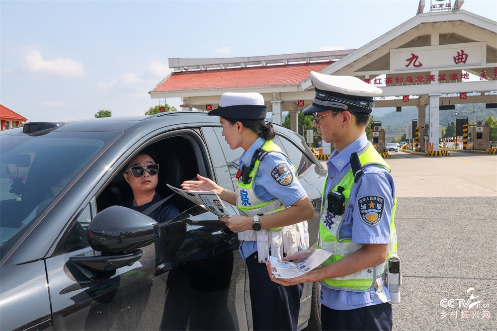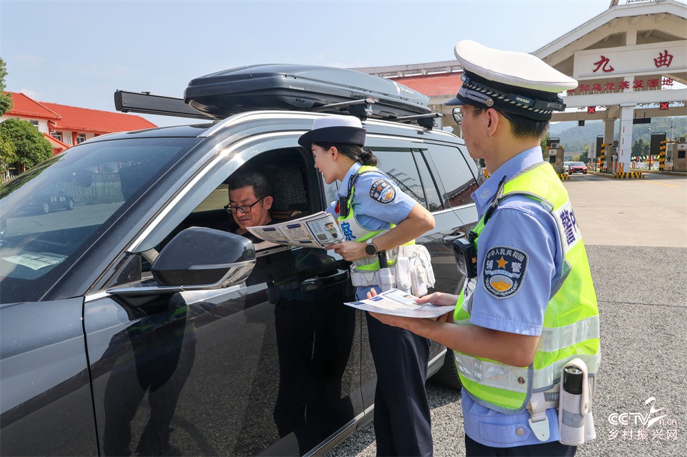 乡村振兴网福建讯(邱汝泉 摄影报道)10月2日,南平高速交警支队五大队民警在武夷山九曲高速路口向过往车辆驾乘人员讲解如何保障道路安全法律法规。