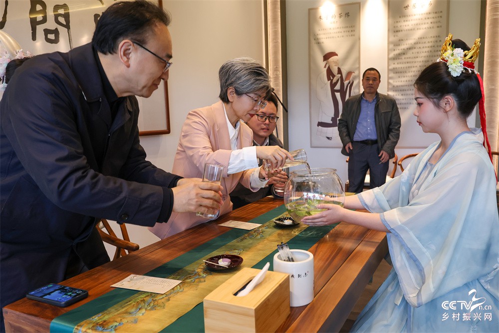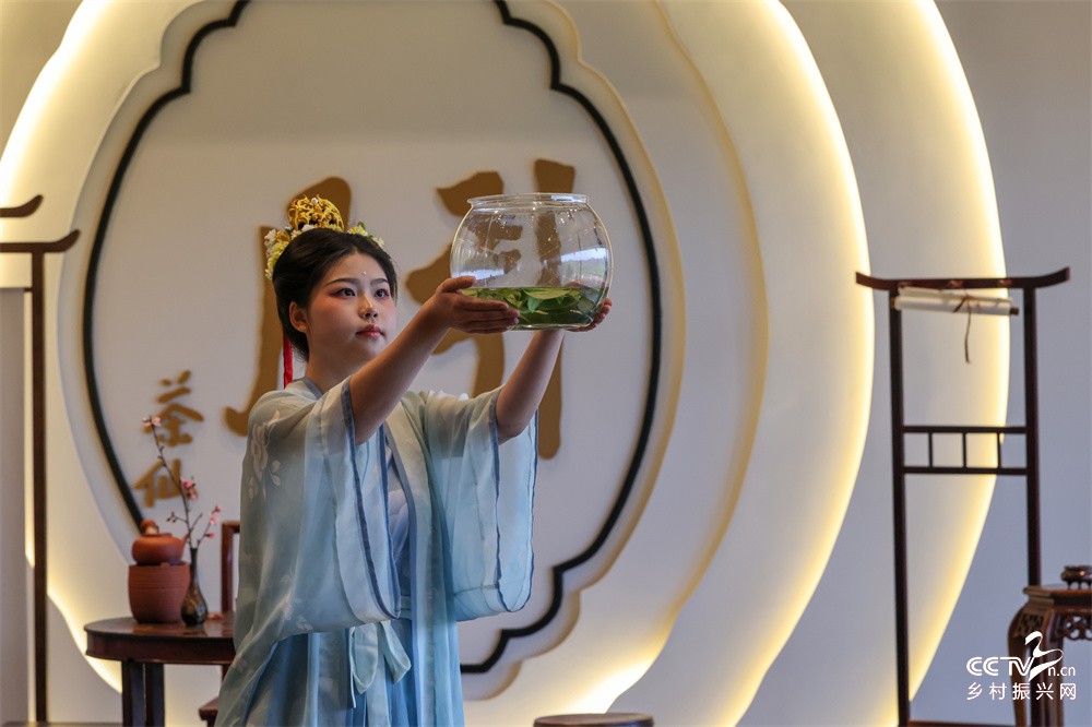 3月21日,武夷山旅游职业学校学生在石上一品茶业有限公司为嘉宾表演“朱子茶礼”首秀。