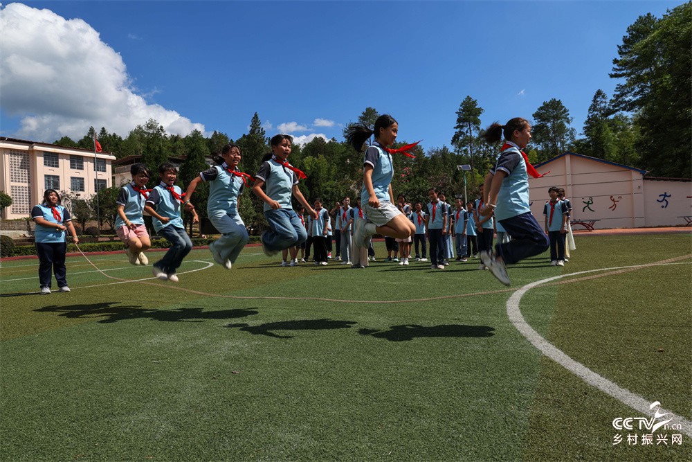 武夷山市吴屯中心小学把传统体育项目跳绳、跳皮筋、老鹰抓小鸡、踢毽子等引进校园,在大课间开展有趣的跳绳、跳皮筋、老鹰抓小鸡、踢毽子等活动,加大小学生的体育锻炼。