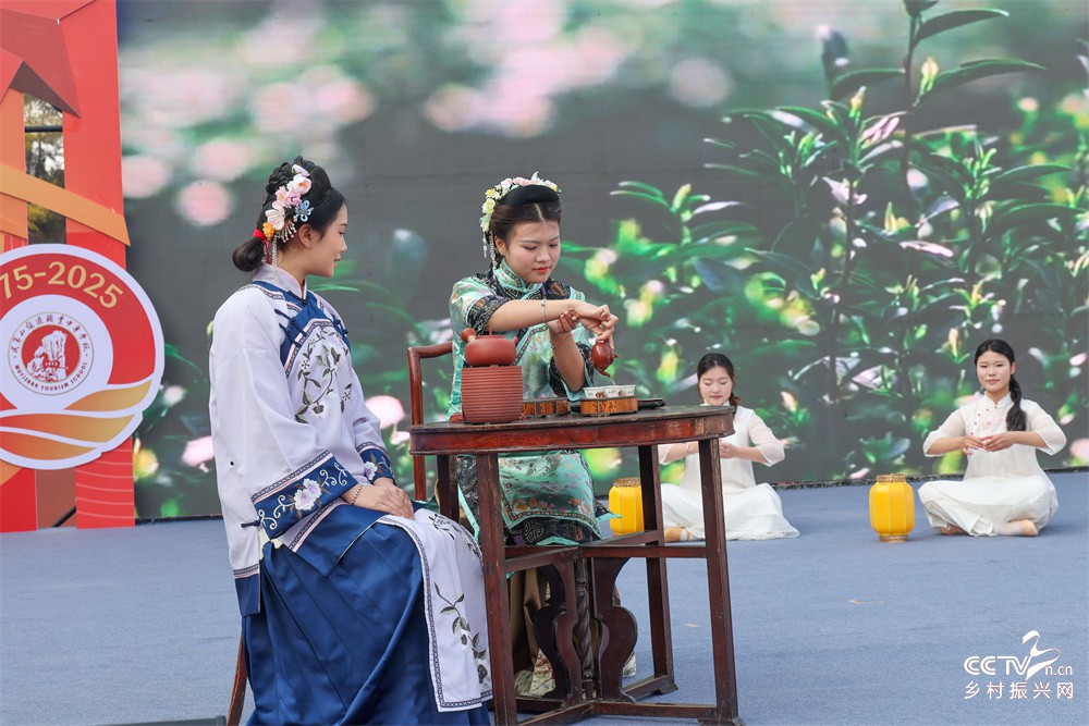 图五、1月16日,武夷山旅游职业中专学校学生在建校50周年教育教学成果展上表演宋代点茶。