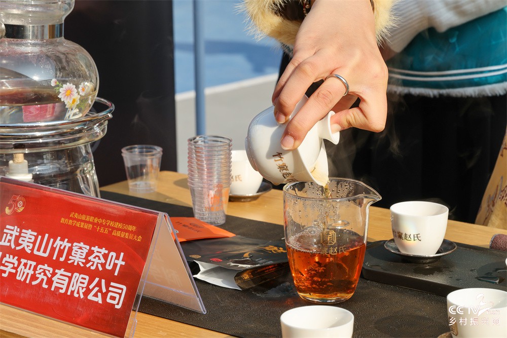 图九、1月16日,武夷山旅游职业中专学校校友在建校50周年教育教学成果展上品武夷岩茶。