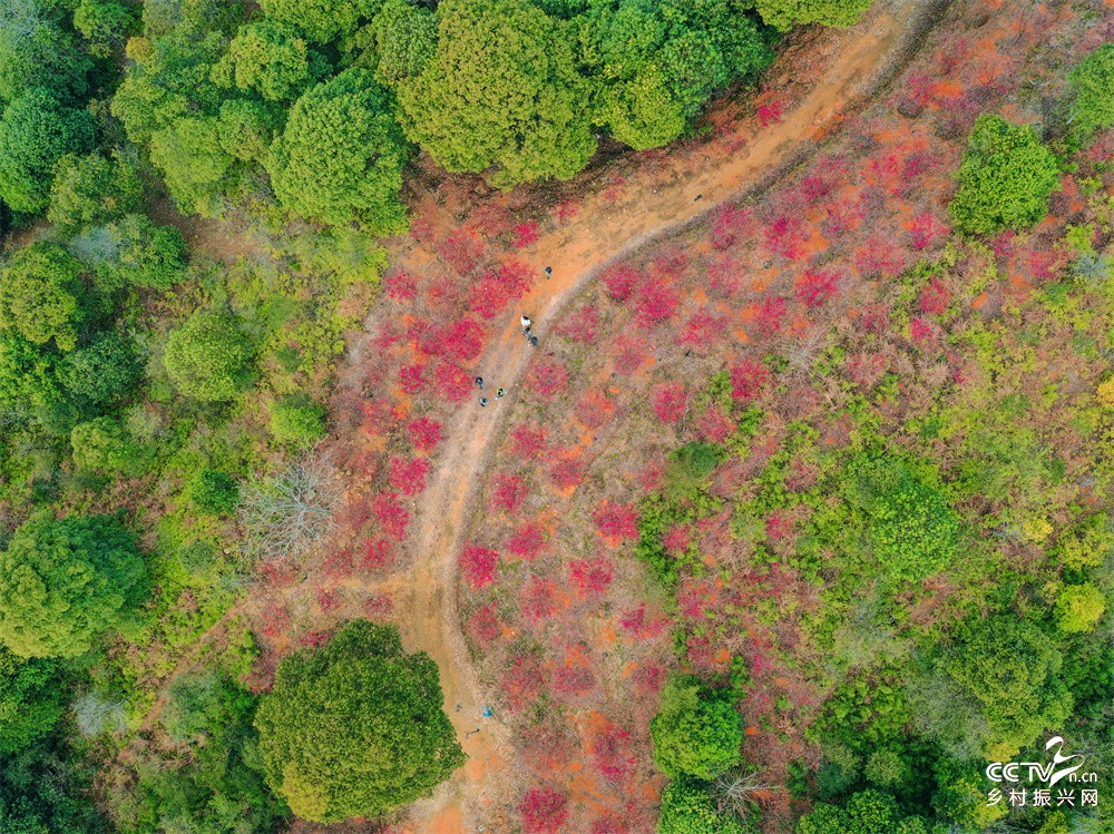 3月2日,游人在武夷山国有林场樱花林赏樱花(无人机照片)。