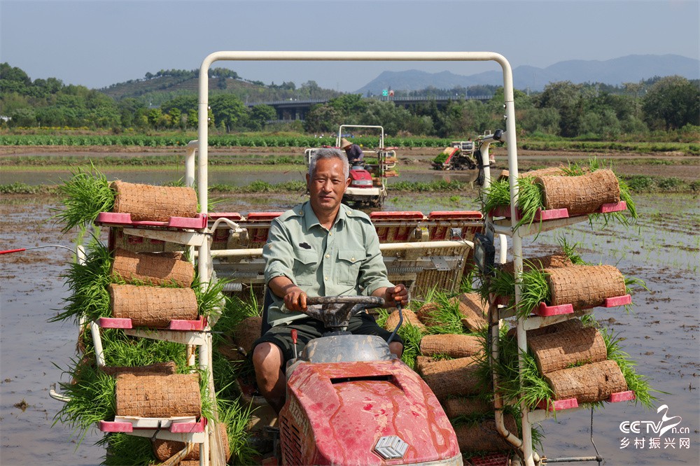 图二至图五、4月19日,武夷山市福民生态农业农民专业合作社社员在兴田镇兴田村高标准农田里用插秧机插再生稻秧苗。(邱汝泉 摄)