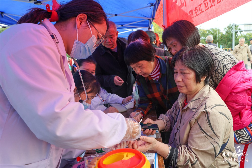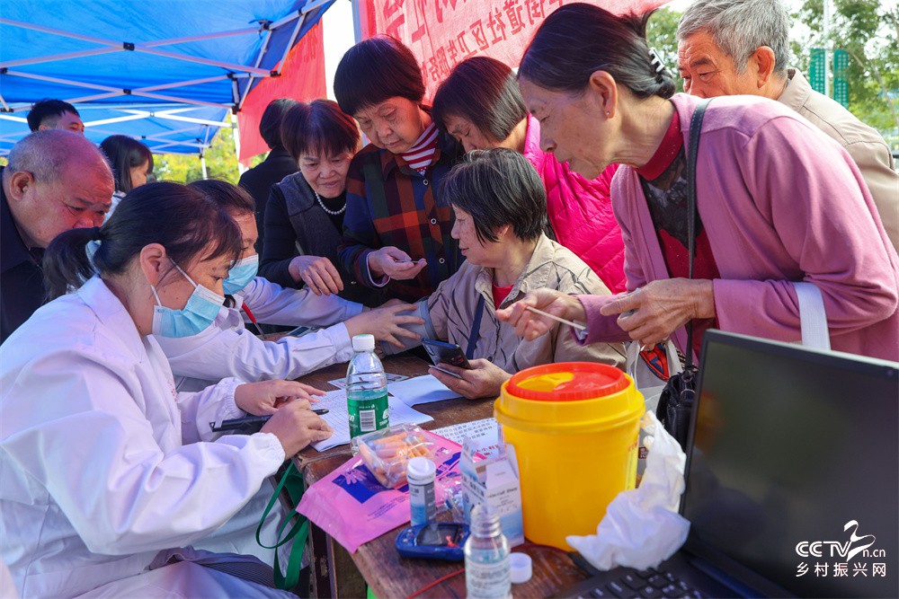 图二、图三、10月28日,武夷山市新丰街道卫生服务中心的医务人员在“暖暖敬老心,重阳共欢乐”重阳节活动中为老人义诊。