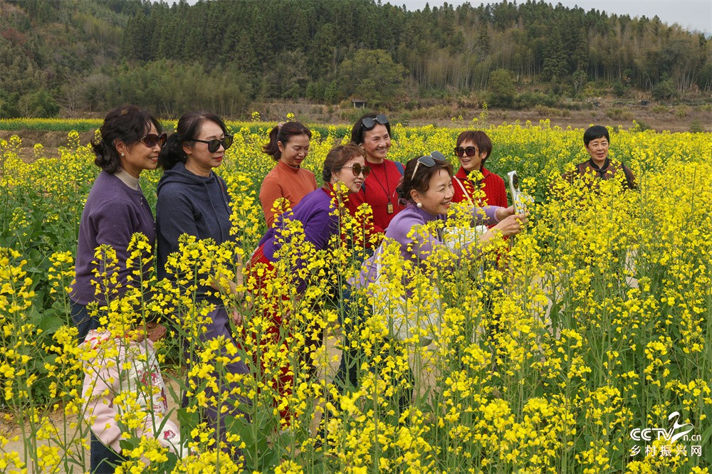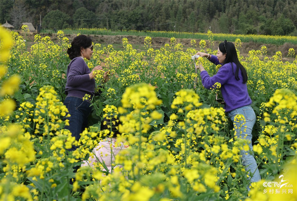 3月8日,游人在福建武夷山花仙谷景区油菜花田里赏花拍照。
