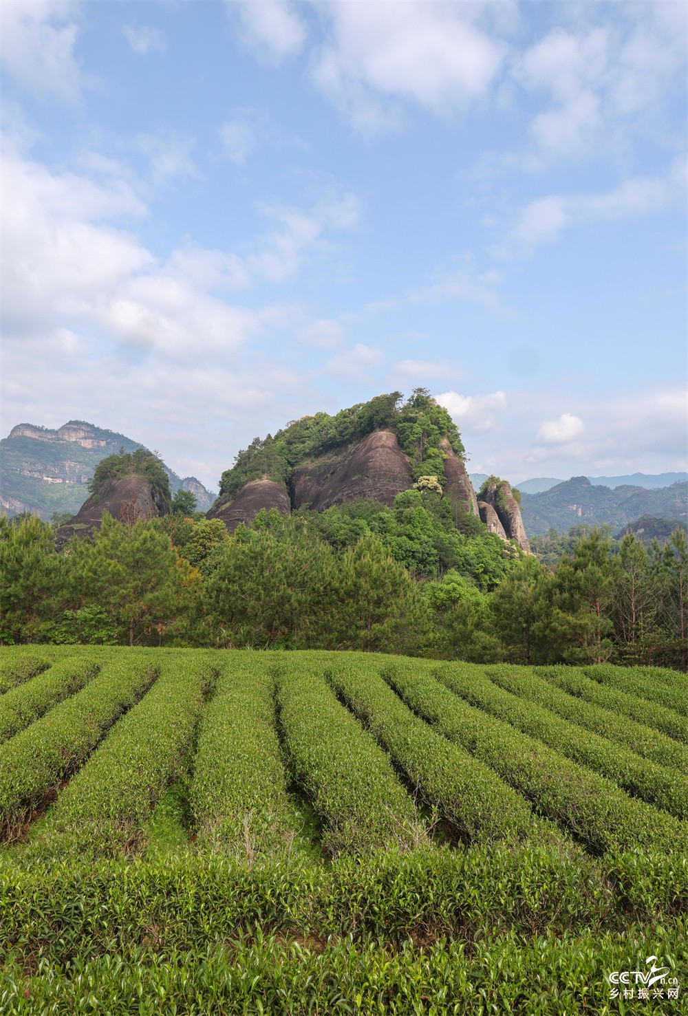 乡村振兴网福建讯(邱汝泉 摄影报道)清晨的武夷山马头岩,大王峰静立云雾间。澄澈碧空缀着绵软白云,暖煦晨光漫过山峦,温柔洒落整片茶山。层层叠叠的茶园顺着山势绵延,满目翠绿鲜亮欲滴,茶枝沾着晨露,在柔光里漾着清新光泽。岩峰巍峨,草木葱茏,蓝天、白云、丹崖与碧色茶山相映相融,山野清风吹拂,景致朦胧梦幻,宛如步入人间仙境,满是治愈的山野诗意。