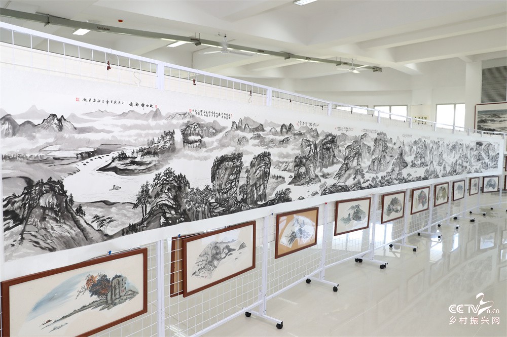 乡村振兴网福建讯(邱汝泉 摄影报道)10月1日,章学斌在南平航天体验馆向参观者介绍书画作品。