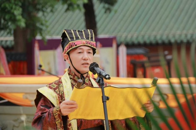 大典中,经典诵读环节颇具特色:先由全体嘉宾齐声共读《道德经》第1章和第81章 首尾合诵,成“源与流、知与行”的圆满闭环从第1章探“道之始”,到第81章明“道之终”,首尾呼应的诵读形式,象征着对老子思想的完整传承与践行,既表达了对道祖完整思想体系的尊崇,也传递出“悟本源、守初心、践大道”的文化追求,让祭典的文化内涵更具层次感与完整性!随后循古代读书之法开展吟诵,以古韵声律带领众人穿越时空,让经典活起来,入人心。华夏老子文化研究院副院长俞春铭全程引领,朗朗书声与悠扬吟诵交织,让现场众人沉浸式感受经典的思想力量。