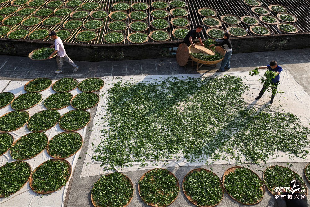 图四、图五、4月25日,武夷山星村村茶农在手工制茶--日光萎凋。(邱汝泉 摄)