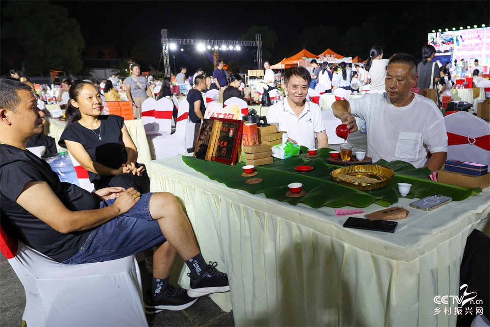 乡村振兴网福建讯(邱汝泉 摄影报道)10月5日晚,八方游客在武夷山市茶博园举行的千人品茗斗茶赛上观赏武夷茶艺品茶。