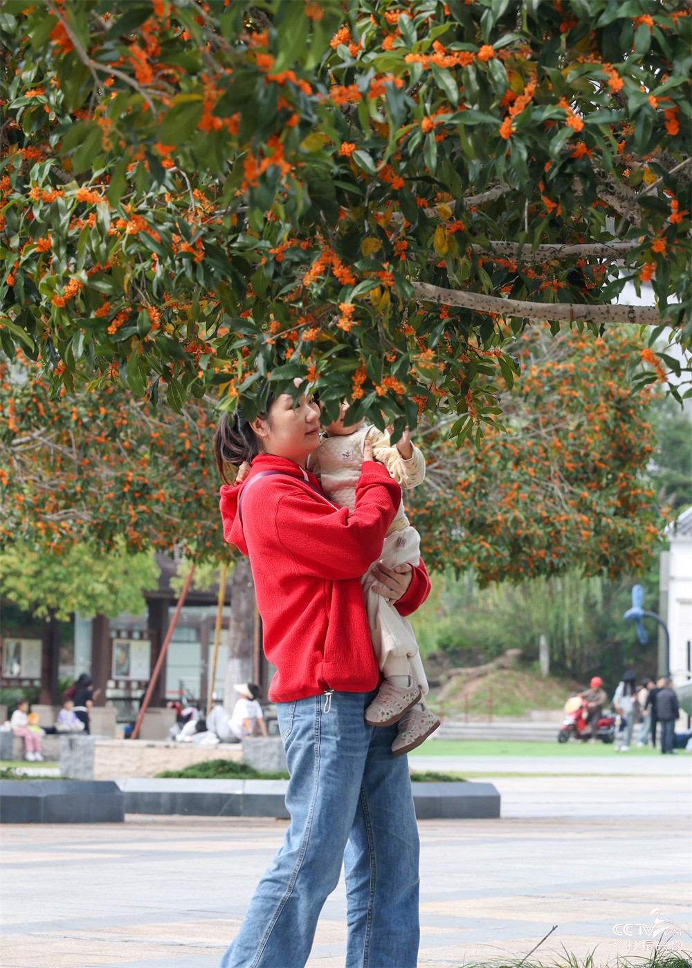 乡村振兴网福建讯(邱汝泉 摄影报道)11月2日,武夷山市民在市民广场观赏盛开的桂花拍照。