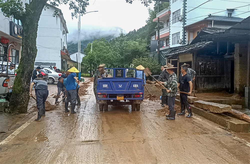 武夷山市星村镇是这次强降雨受灾最严重的乡镇之一,星村镇组织镇村党员干部在抗灾第一线,组织易发生险情地方村民疏散,利用雨停间歇清理道路淤泥,确保乡村道路干净畅通。