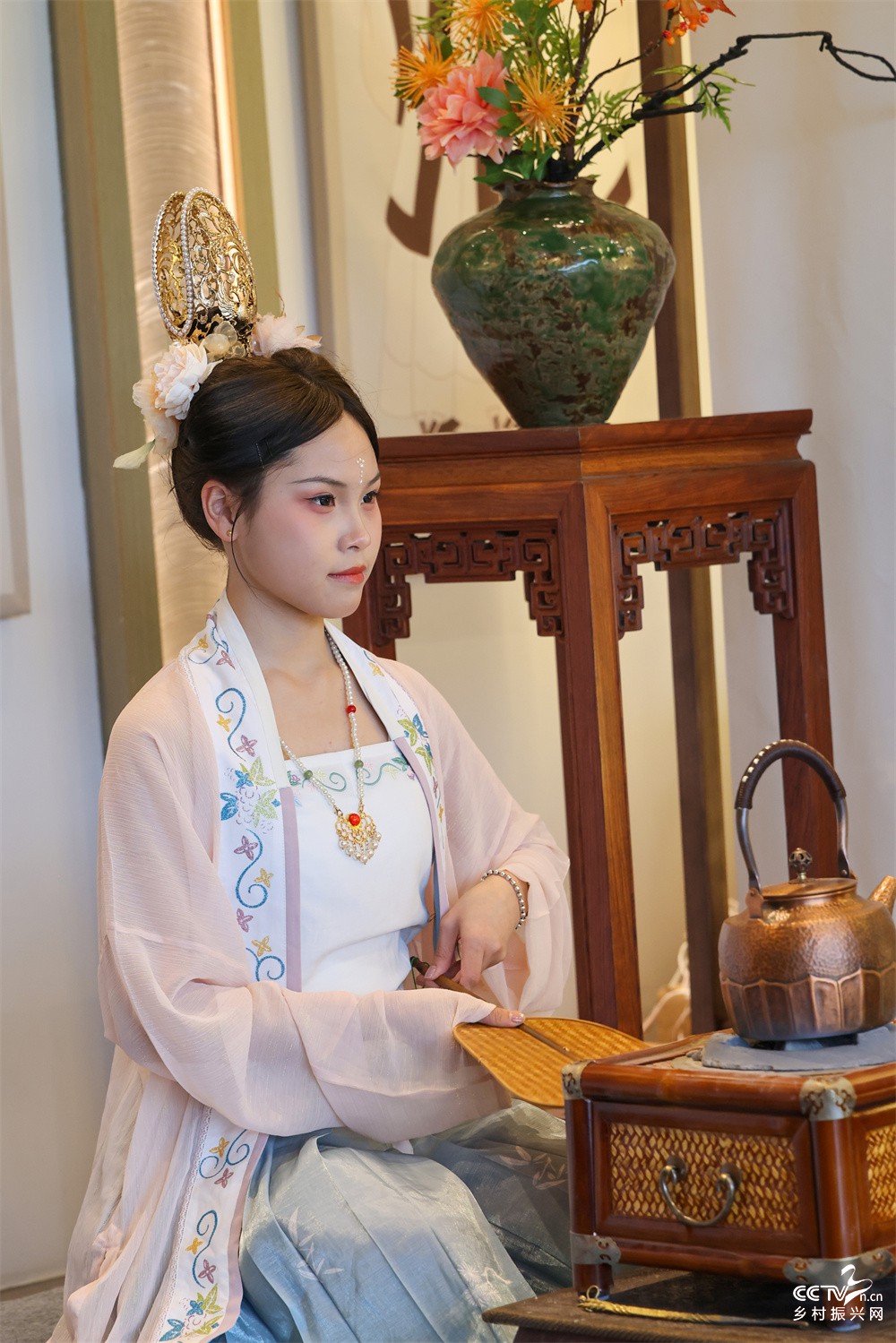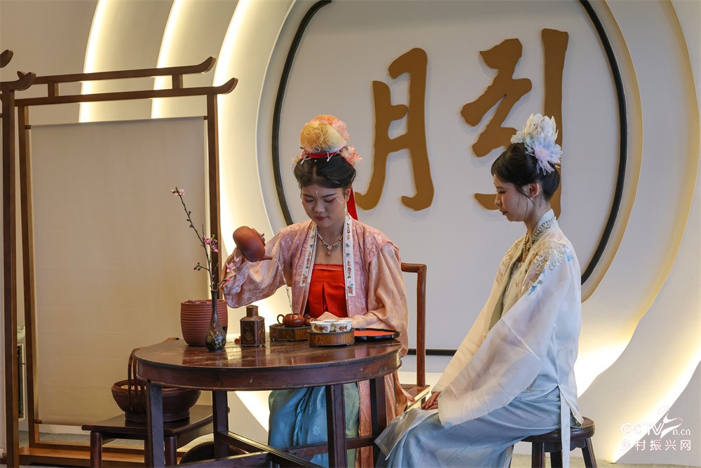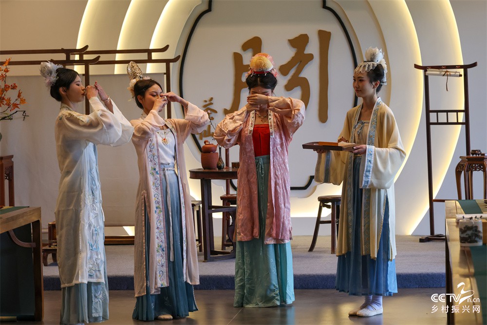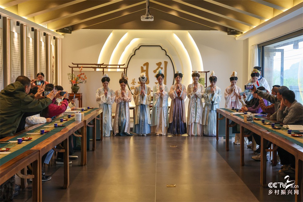 3月21日,武夷山旅游职业学校学生在石上一品茶业有限公司为嘉宾表演“朱子茶礼”首秀。