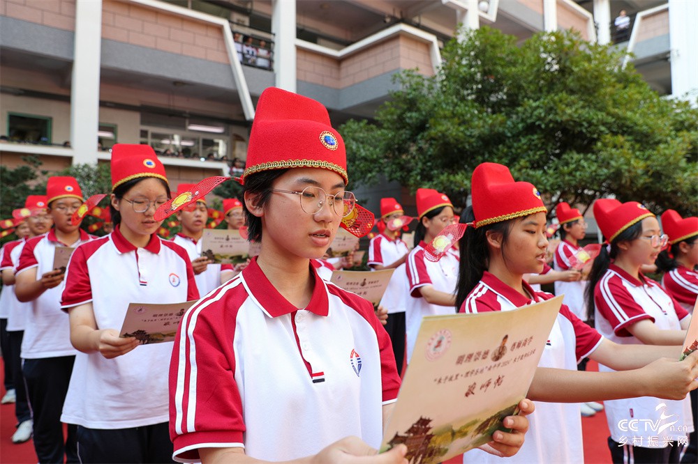 图二、图三、9月11日,福建武夷山市第二中学学生在敬师礼上诵读《敬师帖》。