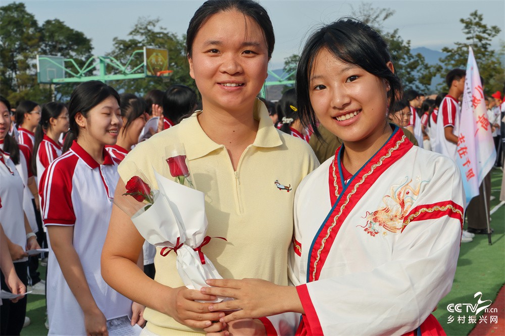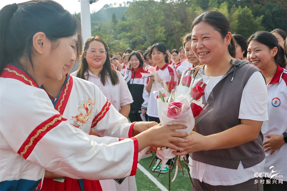 图六、图七、9月10日,福建武夷山市第二中学学生在敬师礼上献花给老师表感恩之心。