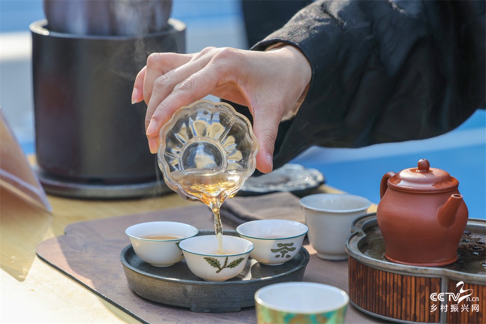 图九、1月16日,武夷山旅游职业中专学校校友在建校50周年教育教学成果展上品武夷岩茶。