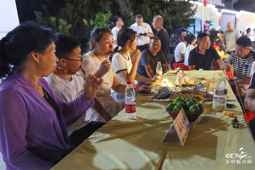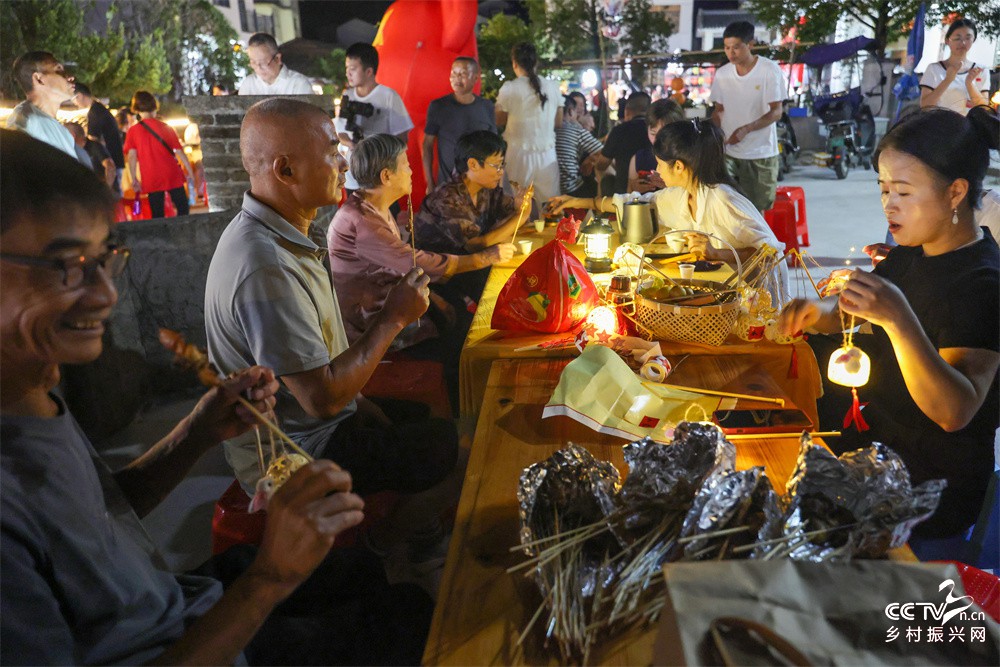 当晚,武夷山市星村镇黄村村举办百桌茶宴庆中秋活动,游人和村民在百桌茶宴上赏月、品茶赏美食。
