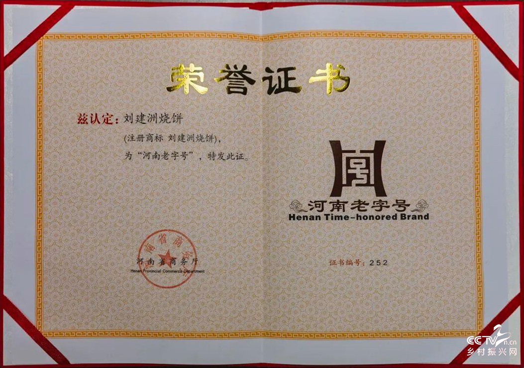 2013年11月,刘家烧饼店被河南省电视台授予“2013年十佳特色风味名吃名店”。
