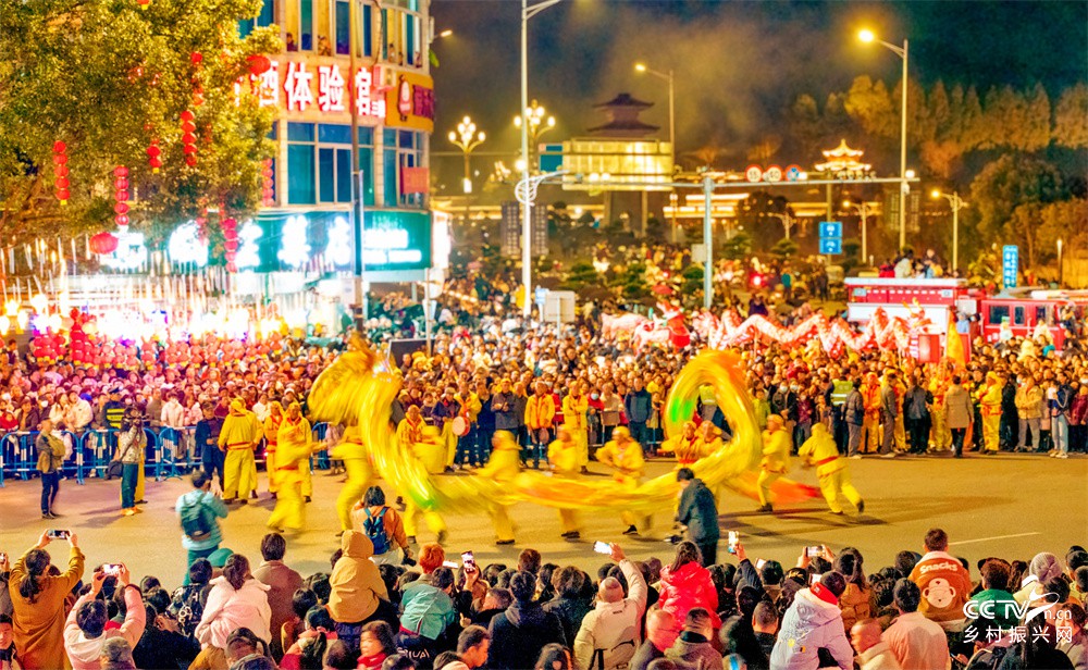 图九、2月12日(元宵节)晚,拔烛桥队在福建武夷山举行“蛇武新春 夷起过年”闹元宵舞龙踩街活动。