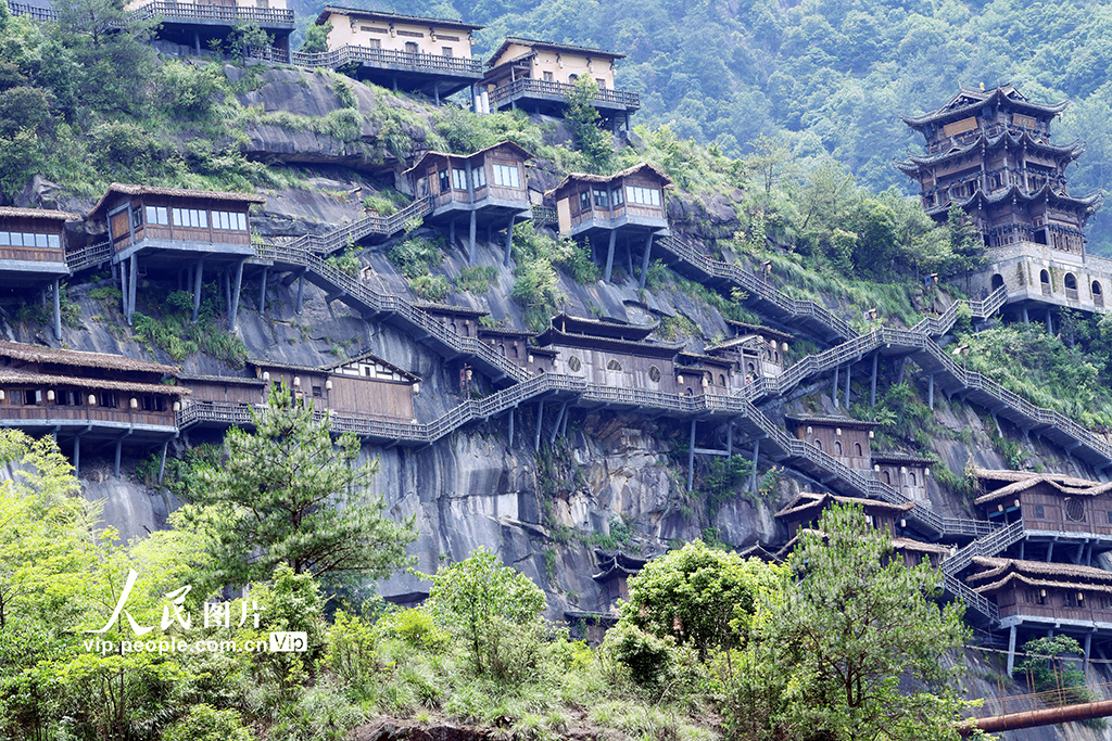 江西省上饶市广信区望仙谷“悬崖民宿”建在110多米的白鹤崖之上,悬崖上建有崖上民宿、悬空玻璃客房、悬崖图书馆和悬崖餐厅、高空观景台。