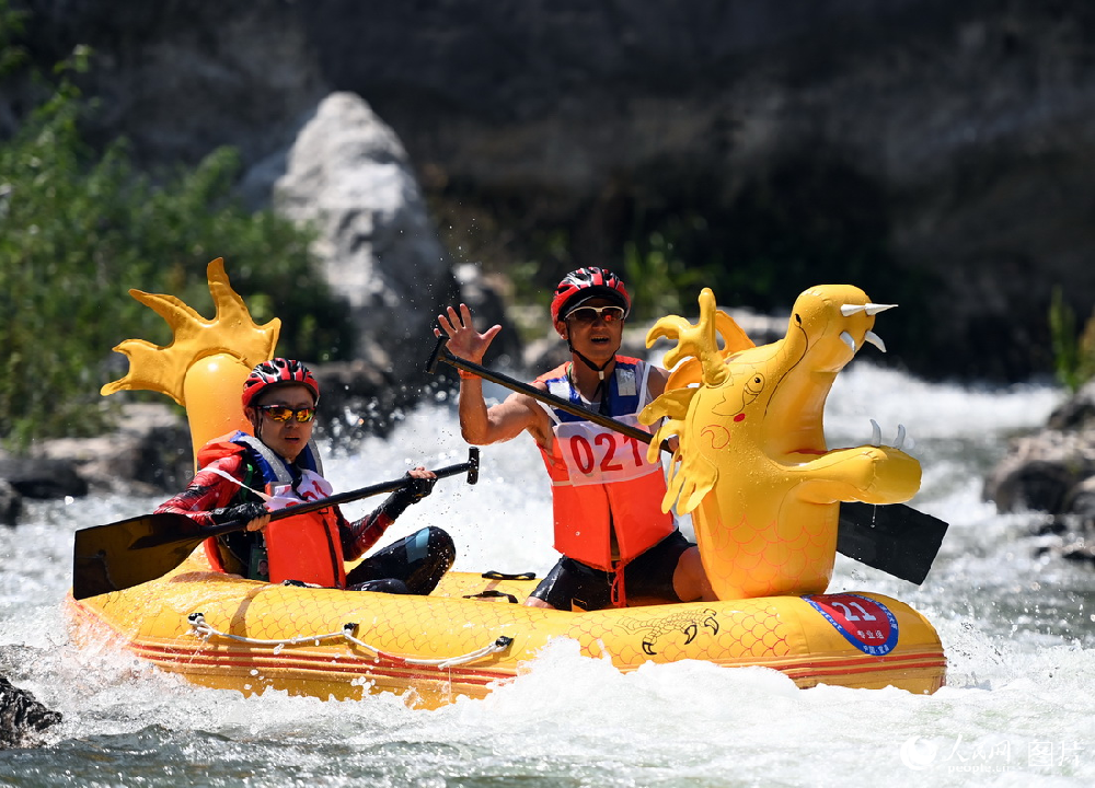 6月10日,2023年中国宜昌朝天吼自然水域漂流大赛在湖北省宜昌市兴山县挥桨开赛,来自全球10个国家的26支专业组运动员和2000多名漂流爱好者搏浪飞舟,竞速漂流。