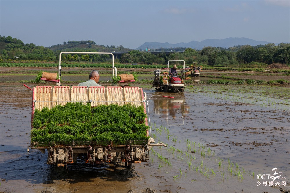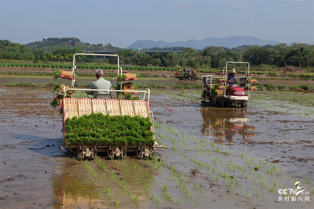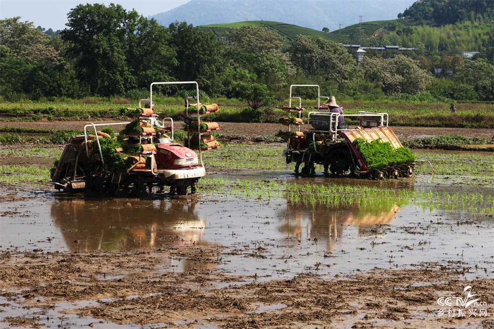 图二至图五、4月19日,武夷山市福民生态农业农民专业合作社社员在兴田镇兴田村高标准农田里用插秧机插再生稻秧苗。(邱汝泉 摄)
