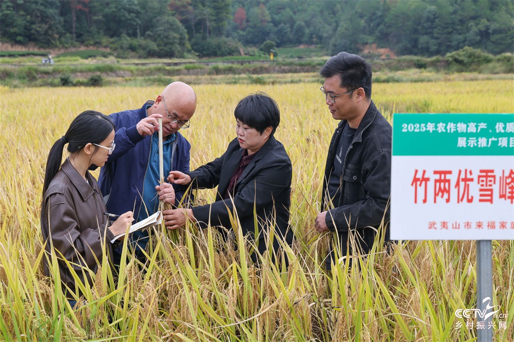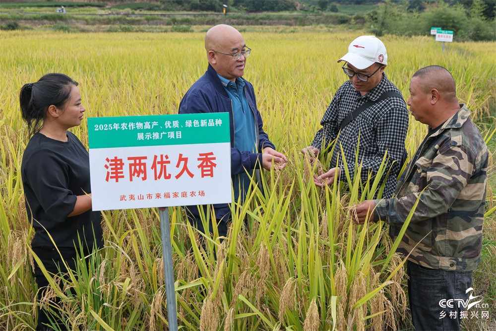 乡村振兴网福建讯(邱汝泉 摄影报道)10月23日,武夷山市2025年优质稻新品种示范推广现场观摩会在崇安街道来福农场举行。