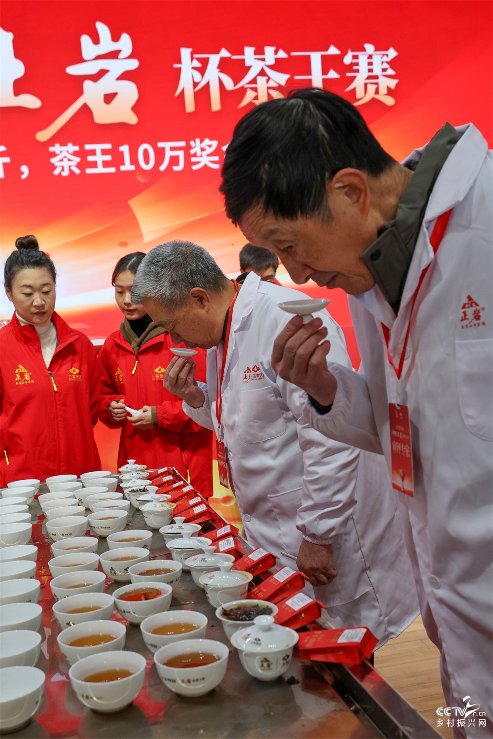 乡村振兴网福建讯(邱汝泉 摄影报道)当日,第六届1938.“正岩”杯茶王赛决赛在武夷山市会展中心举行。本届比赛共收到茶样3946个,评审专家现场对茶样外形及内质进行评比,经过初赛、复赛,今天进入决赛。四个茶王分别:武夷山市宏河谷茶厂获得大红袍茶王、武夷山市弘睿茶业有限公司肉桂茶王、武夷山市奇树有茗茶业有限公司获得水仙茶王、十年以上陈茶茶王洪冬梅获得茶王。武夷山市斗茶习俗由来已久,每年都举办形式多样的斗茶赛,促进制茶技艺和茶叶品质提升。