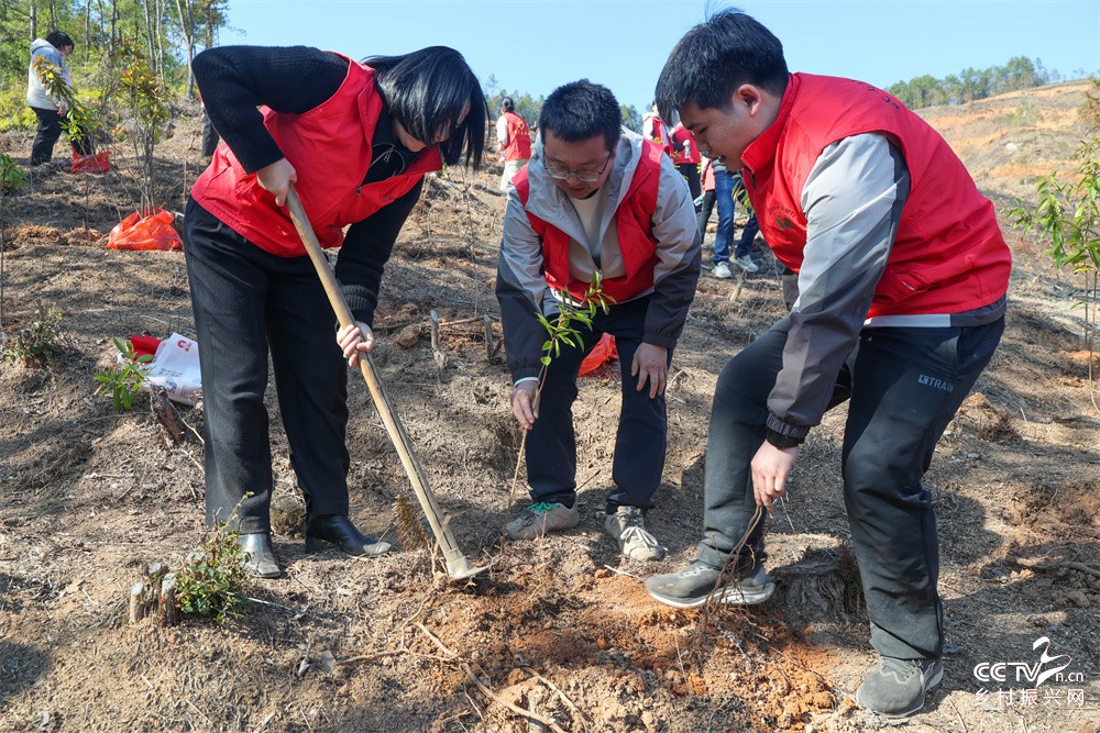 3月12日,武夷山市青年志愿者在吴屯乡大浑村植树造林种下木荷、枫香等乡土阔叶树。