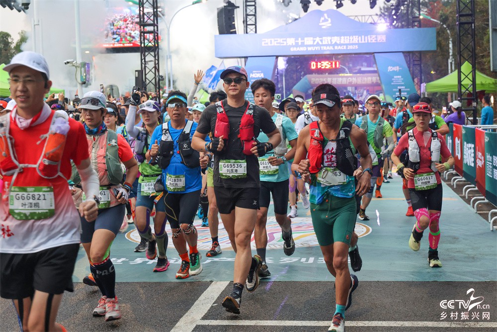 乡村振兴网福建讯(邱汝泉 摄影报道)11月8日,参加2025第十届大武夷超级山径赛双遗探秘100公里组的选手在武夷山度假区开跑。