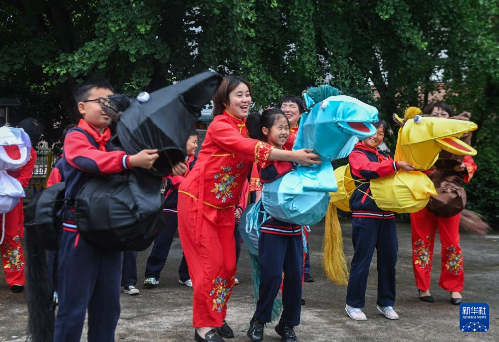 5月24日,长兴县煤山镇中心小学的学生在新民村学习新民马灯舞蹈。