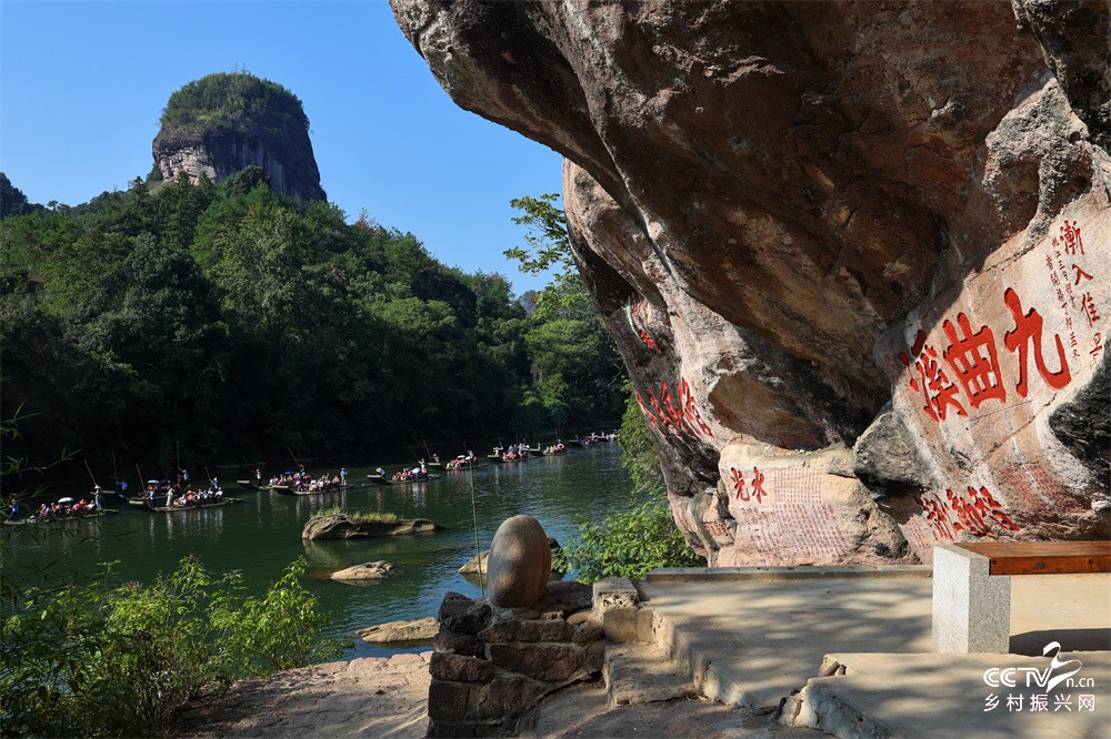 乡村振兴网福建讯(邱汝泉 摄影报道)中秋国庆长假期间游人乘坐竹筏游览武夷山国家公园九曲溪。
