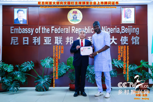 乡村振兴网讯:2025年11月16日,知名企业家国音电商-万亿上市服务集团董事局主席文国红应邀访问尼日利亚联邦共和国驻华大使馆,进行经贸文化交流,并达成一系列共识。不仅强化了中尼友好交往的纽带,还为未来企业国际化发展开辟了新路径。